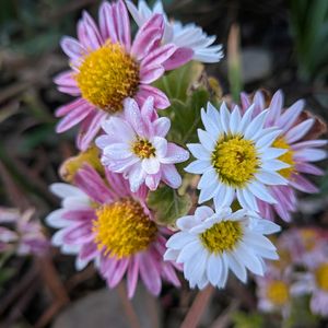 種まきビオラ3株 どれも同じヌーヴェルヴァーグの子ども達です🤗 まだ開花しない株があります🍀*゜春まで気長に待ちましょう🎵