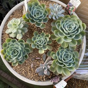 葉挿しの多肉が成長して 植え替えるとなると大変だしな〜ってことで、寄せ植えにしました! 数種類しか持ってないけど、 ま、これで良しとしとこ〜👍