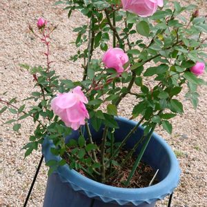こんばんは😃🌃 今庭より12月の薔薇✴️ 寒空にピンクの薔薇さんが頑張って咲いています! 元気をもらって笑顔に😊🩷 今日も一日お疲れ様です
