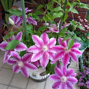 クレマチス・テッセンはどんどん咲いてきてますよ😊 元肥が効いてるので、底面給水鉢には活力剤を入れてます✌️