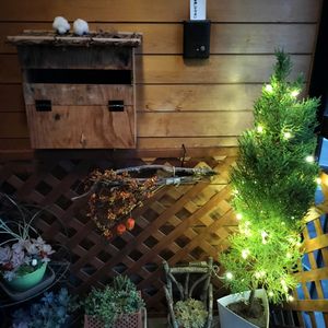 こんばんは〜🌟 最近の青森は暖かく 12月とは思えない程、雪がないです もう少しでクリスマス🎄 玄関のコニファーにイルミネーションの飾り付けしました💡