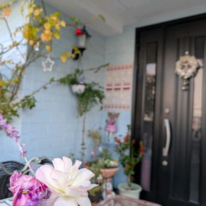 ①挿し木のシャリファアスマ 香りがとても良くて、今年最後のお花が香り高く咲きました💓 ②この秋からは黒星に負けて…あや、消毒をしなくなったからか⁉️ すっかり葉っぱを落としたフレンチレース もう葉もぎしてるから、この株はしなくていいのは有り難いのだけど😁 お花もあまりきれいに咲かなかったけど、最後にいい感じに開いてきそうです ③④⑤レイニーブルーの立体花壇 ようやく側面が両方とも完成しました‼️ 今朝は7時からモルタル練ってた 8:45に出かける予定があったから、8:30までに仕上げるために頑張りました💪 午後雨予定☔が、1:30くらいにはポツポツし始めたので、シートをかけて養生しておきました 今日は姉と🌕に1週間だけオープンするcafeに行ってモーニング💓 雑貨や、お洋服魔女の飾りや陶器にグラス類、来年のお正月飾り🎍など、目移りするものがたくさん💕 薪ストーブの前でまったりくつろぐ猫ちゃんにも癒されてきました☺️ その後帰り道の園芸店でリース用のお花を買って…この年末のいつ作るんだ⁉️ 今日は大満足でした そして夜なべでリースのワイヤーを張り直しています😁👍