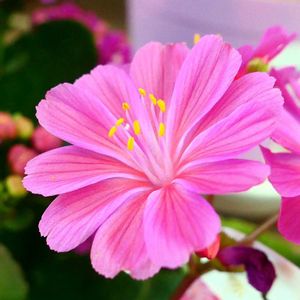 【レウィシア・エリーゼ(レウィシア・コチレドン、イワハナビ)】 北アメリカ 原産、スベリヒユ科多年草 北アメリカの山地の岩場などに自生するピンクやオレンジなどの鮮やかな色が特徴の高山植物。 肉厚で多肉植物のような葉をロゼット状に展開し、株元から花茎を立ち上げ、花径は2~3 cmの色とりどりの可愛い花を咲かせる。 コチレドンが原種で、エリーゼは耐暑性など園芸用に育てやすいように改良された品種。 草丈:15~25cm 開花期:四季咲き(最盛期は4~11月) 花色:ピンク、オレンジ、ホワイト、イエローなど 花の海@山陽小野田市