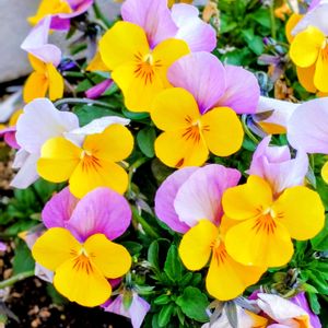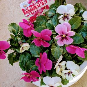ビオラ『気まぐれロージー』 咲き始めは🤍→🩷→💜へと 1株で色んな色が楽しめ、 今は3色が揃い咲き〜🤍🩷💜 (1株植えです)