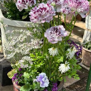 こんにちは♪ 春のような暖かさです☀️ ①②③1/24に投稿した寄せ植えの現在♪ ラナンキュラスは次々と咲き始めました😊 咲き始めはぎゅっと濃くて、咲き進み淡くふんわりとした花とのコントラストも良いかな🎶 マラコイデスも抑え気味の優しい色合いが好きです🥰 エリカはそろそろ終わりそうだな😅 ④⑤今年迎えたラックス。ピュタロスの札だったのに💦 これってハデスですよね⁈😳 好きだから良いのですが…😅 追伸…先ほどエリスなのではと教えて頂きました😅 タグも🏷️エリスに変えちゃいますね🙏