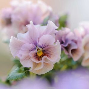 パンジー 天の羽衣 ニュアンスカラーの美しい花色 少しずつ淡い色合いに なってきました.。.:*ෆ ネーミングのイメージのような 優しいフリルもとても綺麗𓍯 ⸝⸝⸝⸝ お花が小さめで株のまとまりもよく お気に入りのシリーズです♬*.:*
