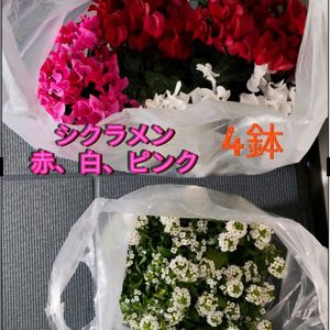 今頃〜ガーデン・シクラメンとアリッサムを お迎えしました。 ✤シクラメン 赤2ポット 白2ポット ピンク1ポット ✤アリッサム 白ポット 早く植え替えしなくちぁ〜 大変ダァー☻ 12月にお迎えした シクラメン3鉢は 良く長持ちしてます 🩷🩷🩷🩷🤍🤍🤍 カランコエは咲かない 😣