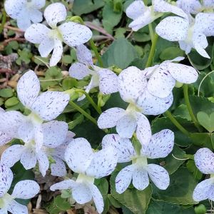 吹きかけスミレ一斉に咲きました 種がこぼれて小さな芽が沢山出て来ました