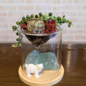 🌵多肉の寄植え🌵 しろくまの頭上に現れた浮島💎 見上げるしろくまが可愛い🩷