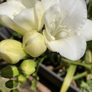 おはようございます やっと咲き始めたフリージア 大好きな香り 様々な花色で咲くボケの花 伸びて 疲れ切った部分のルビーネックレスを別の鉢植えに置いていたら…さすが 多肉植物 又 ぷっくり元気になって 可愛い花を咲かせています 今年も 持ち堪えてくれたレウィシア 花数が随分増えました みんな すごいね