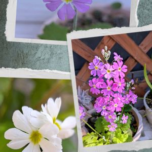 今日のお花 サクラソウ🤍🩷💜 こぼれ種から咲きました〜🌸