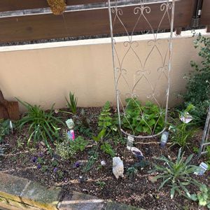 縦1メートル横2メートルの三角形のレイズドベッド 水捌けが悪いのか 何が悪いのか分からないのだけれど なんとなく植物の育ちが悪く 定着率が悪い…気がする ので、のこりのパワフルシリカを 全部、この花壇にぶっ込みました(pic2 あとは色々植え込んで(pic1 様子を見てみます