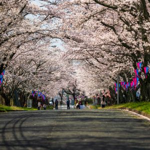 桜散歩シリーズ 京都背割提🌸 京都府八幡市にある宇治川、桂川、木津川の3つの河川が合流し「淀川」へと名を変える合流地点にある背割堤(せわりてい)🌸 毎年春には、全長1.4kmの堤防上に約220本の『ソメイヨシノのトンネル』が出現し、河川敷を桜色に染め上げます🌸 5枚目は、対岸にある石清水八幡宮の桜です⛩️🌸