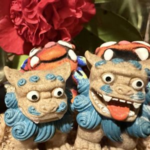 🏷️シーサーの日 参加します🌺🌊🌴 椿とシーサー🌺·͜· ︎︎ᰔᩚ