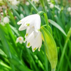 4/4 (土) 🌧☁️🌧 🤍💚💛🌿スノーフレーク🌿💛💚🤍 スノーフレーク 学名✿Leucojum aestivum 英名✿Summer snowflake 和名✿鈴蘭水仙、大待雪草 ※ヒガンバナ科 ※スノーフレーク属 原産地🔷中央ヨーロッパ ♠️2月頃に葉があらわれ、3~5月頃に開花。1花茎に1~4個の花を咲かせる。和名のスズランスイセンは、花がスズランに、葉がスイセンに似ていることに由来。♠️ ♣️スノードロップとスノーフレークの違いはいくつかあり、まずは花型です。スノードロップは、花びらの一部に緑色が入りますが、スノーフレークの花びらは白くベルのような花型で、スズランによく似ています。 また、開花時期が異なり、スノードロップの方が早く咲き始めます。スノードロップの開花時期が2月~3月なのに対し、スノーフレークは3月~5月頃に咲くのが特徴です。♣️ ※2/25の「今日のお花」スノードロップと間違えて、こちらのスノーフレークを投稿してしまいました。訂正しましたm(_ _)m 今日のお花𖤣𖥧𖥣。𖥧𖧧〜過去pic📷📱🤍💚💛🌿駅前広場公園🏞