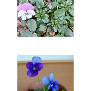 小さな庭🏡 我が家の《ビオラ🩷🤍》 お気に入りの💙 鉢上げしました🫶
