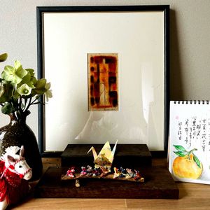 【卯月の玄関模様替え🌿】 恩師のパステル画🖼️と、 クリスマスローズを生けました。💕