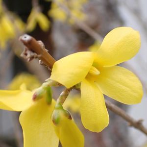 1)2) レンギョウ(連翹) 枯れ山に レンギョウの花 乱れ飛ぶ