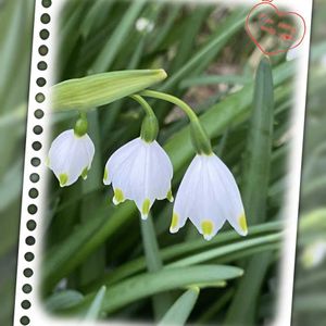 大好きな今日のお花♡スノーフレーク(鈴蘭水仙)が花盛り✨🤗💖 でも実は有毒植物⚠️😱ペット誤食✖️危険です➡️空想のコラボ🐶💚(画像編集しています)
