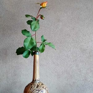 いつもの伯母の花瓶に庭に咲く最後の薔薇の蕾を活けました。 2枚目は5日後、、少し開いてた。˶˃ᴗ˂˶