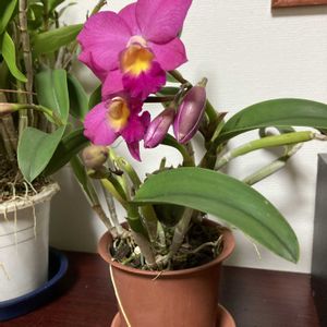 今年も咲きました、ミニカトレア頑張って一枝に花四つ付いています。 もう少し楽しめそう。
