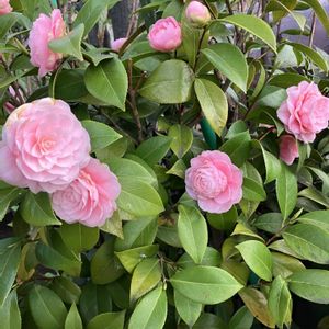 雨が降り出しました。 ①乙女椿 ②チューリップ🌷 ③ピンク 椿 ④今日のお花 ドウダンツツジ ⑤ニワザクラ