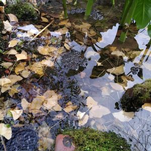 見えにくいですが蛙が沢山の卵を。この季節の風物詩