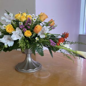 今週のアレンジレッスン ♪スプリングハーモニー♪ 写真では見えにくいけれどカラーが2本入っています 黄色いスプレーバラが入って明るい感じに仕上がりました。:°ஐ..♡* 2枚目はアップです