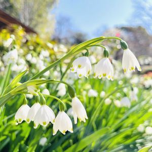 今日のお花 スノーフレーク🌱 別名 スズランスイセン 緑の模様が チャームポイントです やっと咲いてくれた スノーフレーク 可愛すぎます🫧🎶 *ヒガンバナ科 *スノーフレーク属