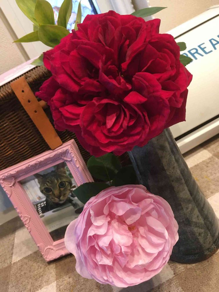 雨続き☂️ 切り花の方が花もちいいみたい🌹 道東の、遅い1番花です。