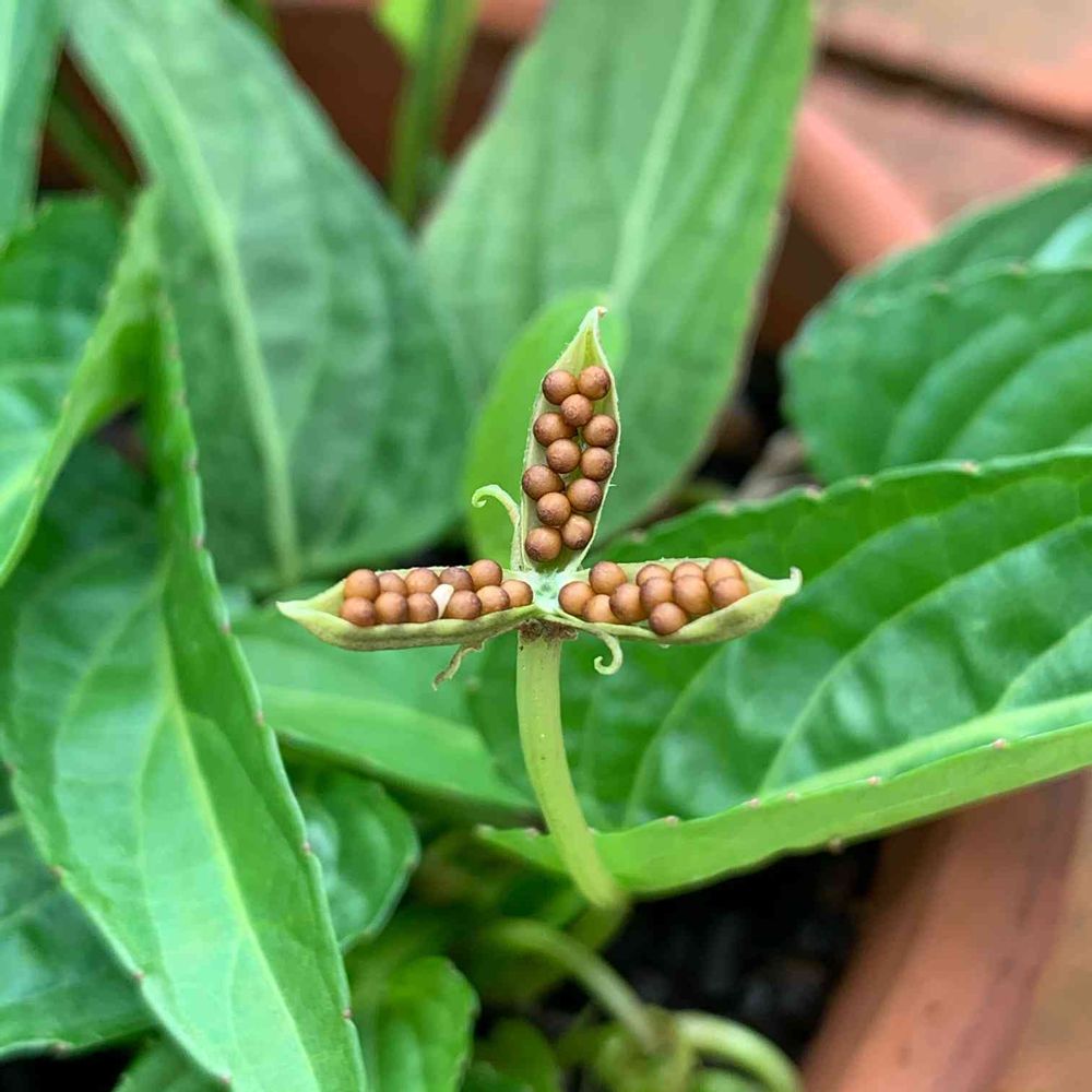 スミレ初心者は知らなかった、閉鎖花なんてものがあるなんて。今日は運良く種をGETと思いきや、うっかりテーブルに置いたままにしていたらパチンパチン音を立てて弾けて😩数粒行方不明にしてしまった💧