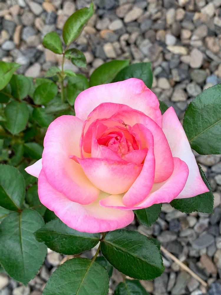 初めて我が家に来たバラです。ピンクの縁どりが可愛い💕