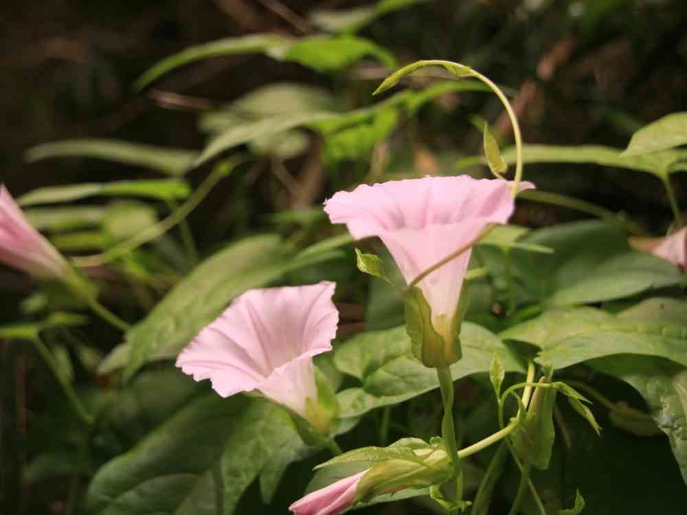 アサガオに似た桃色の花を咲かせ昼になっても花がしぼまないことから名づけられた。