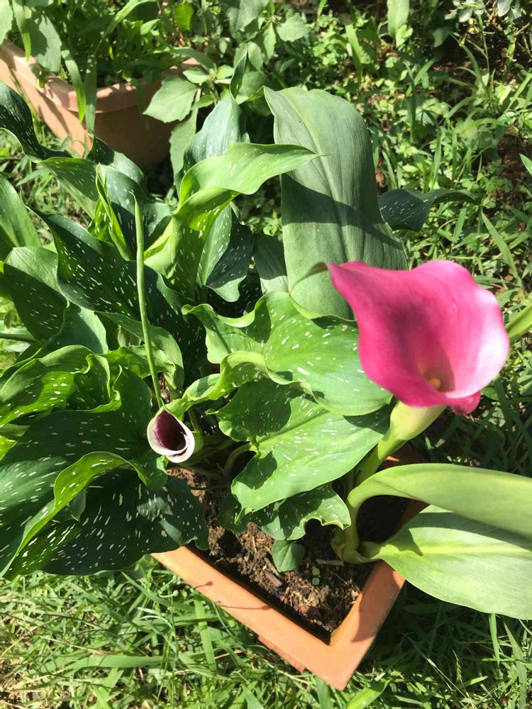 カラーのピカソ(右)咲き始めました✨