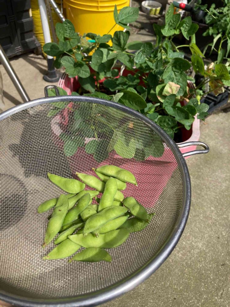 プランター園芸部の枝豆、つき出し一人前ぐらいの収穫でした。