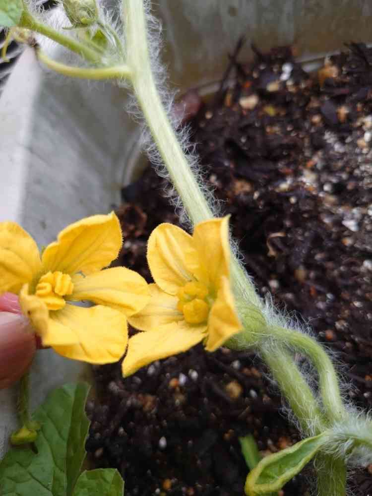 ですが。。。今朝、2個目の西瓜の雌花の花が咲いていました。