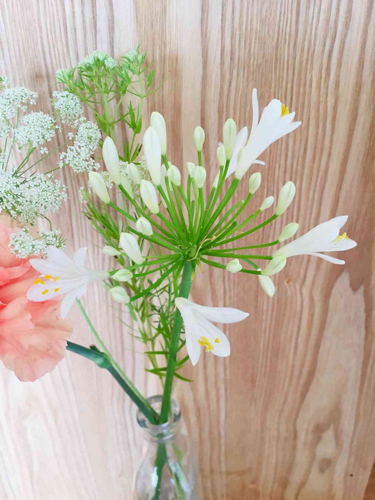 切り花のアガパンサスは、蕾が開かないことも多いそう。蕾を楽しむのだと。