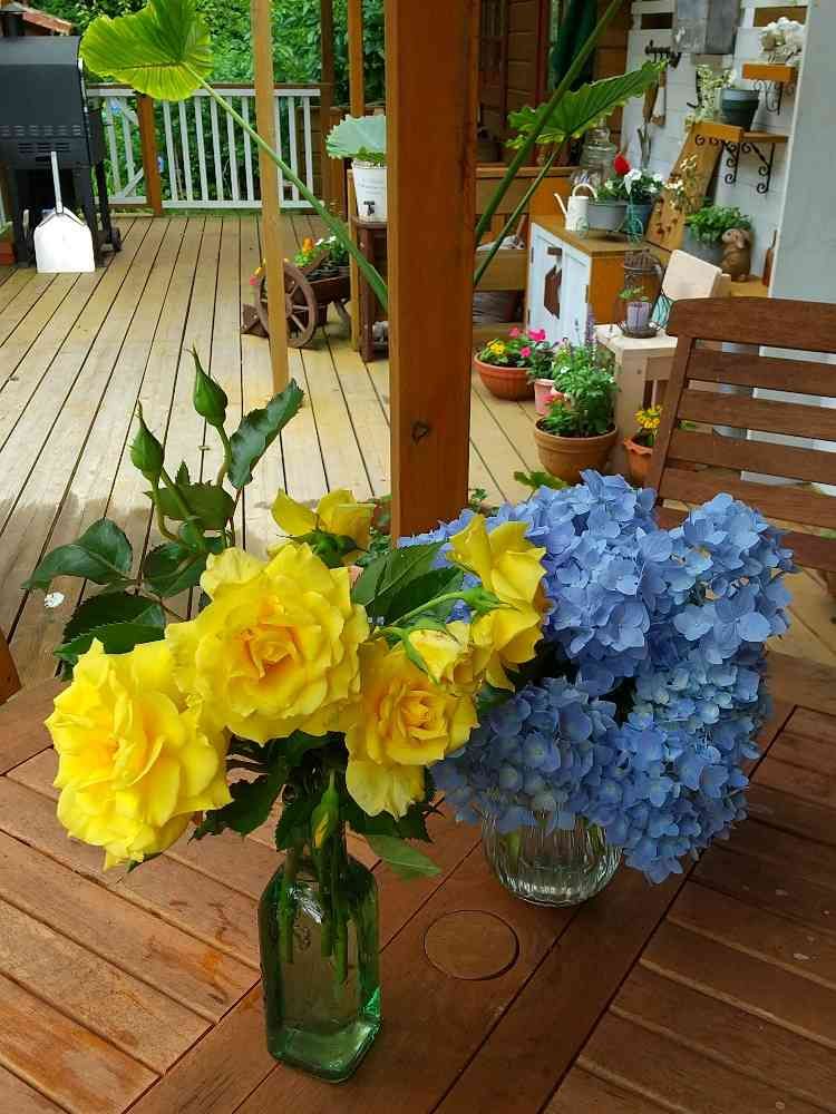 黄色のバラも紫陽花も大好きなので、この時期はテーブルの上でも楽しみます🎵😊