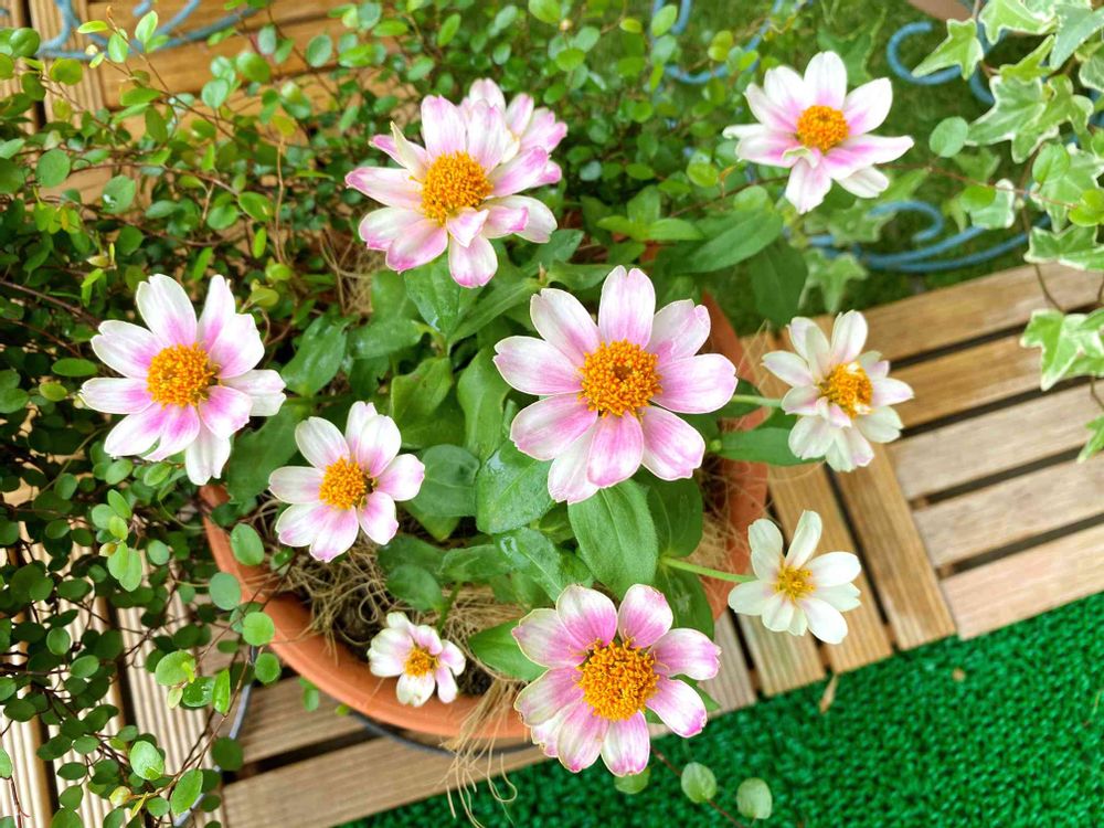 バルコニー/ベランダ,ジニア,寄せ植えの投稿画像