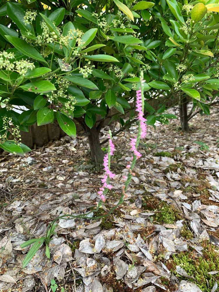 花を咲かせた黄金マサキの下で、ネジバナも咲いていてくれました💕