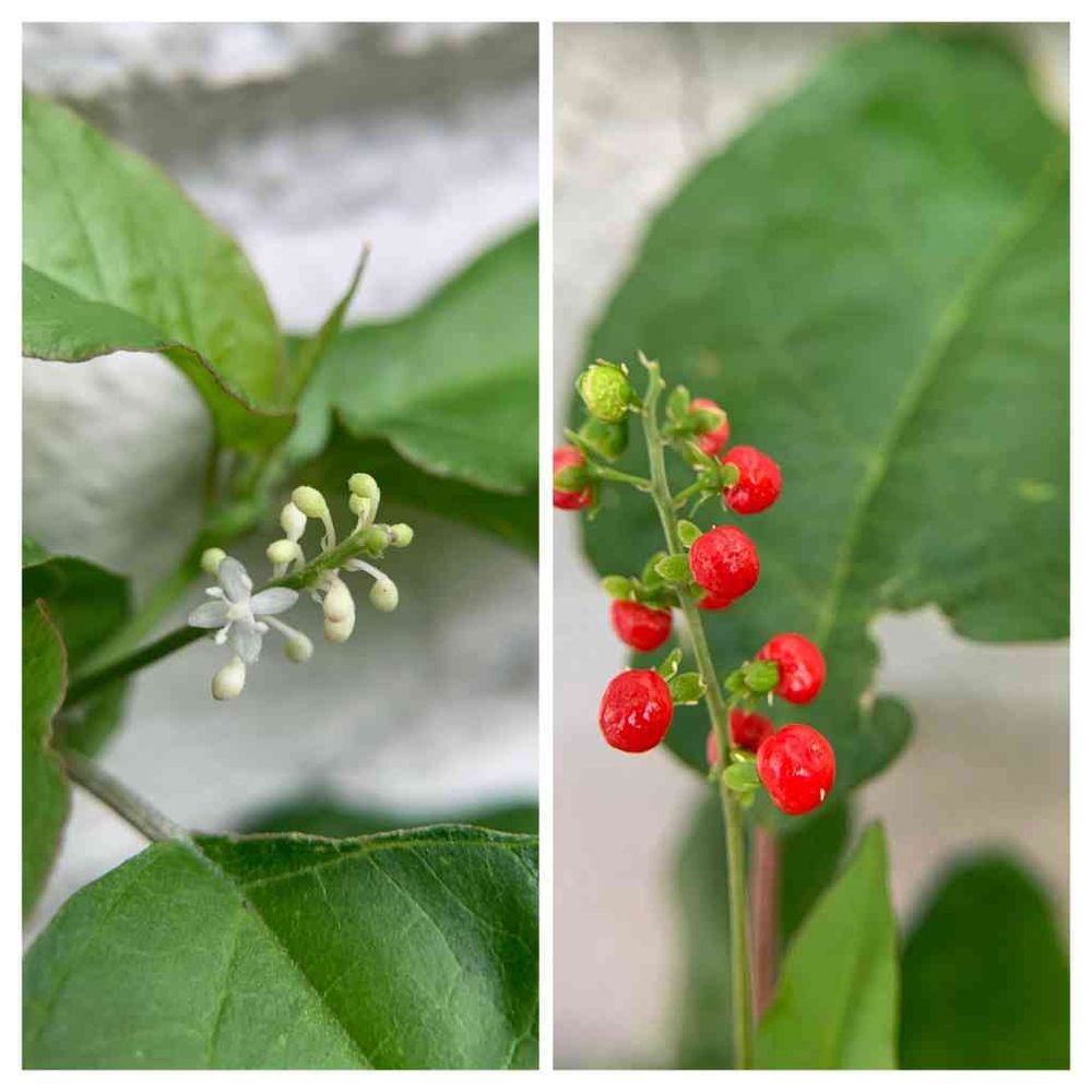 じゅずさんごの花と実。小さいけど鮮やかな赤色がキュート❤️