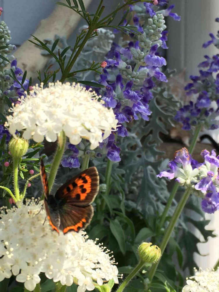 ベニシジミ だそうです。ステキなマダム、お花も喜んでいますね ☘