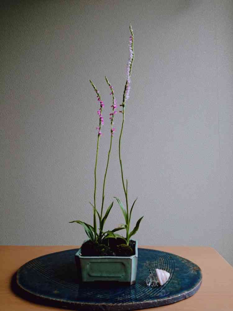 庭のネジバナを小さな盆栽鉢に植え替えて一年でお花が咲きました🤗