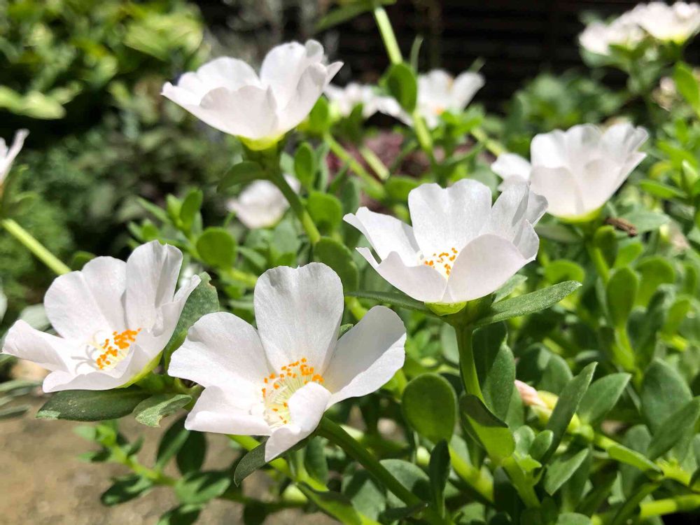 真っ白のポーチュラカがホントに眩しいかぎり〜(*ฅ́˘ฅ̀*)♡