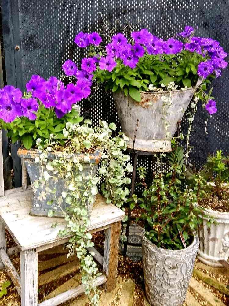 マンション一階専用庭でDIYガーデニングしています。 日当たりのいい南側の庭と半日陰の東側のL字型の庭です。 ペイントの剥がれやアイアンの錆びなど、 シャビーでカッコイイのが好みです。