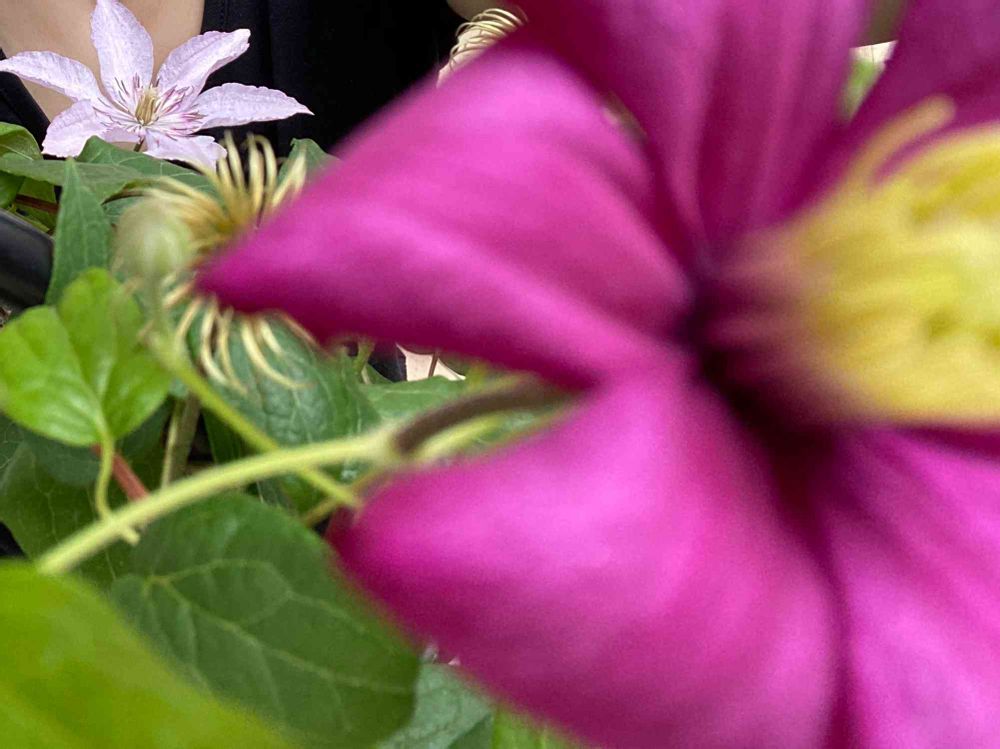 クレマチスハーグレイハイブリッド、こんな赤紫色の花が咲きました🙀