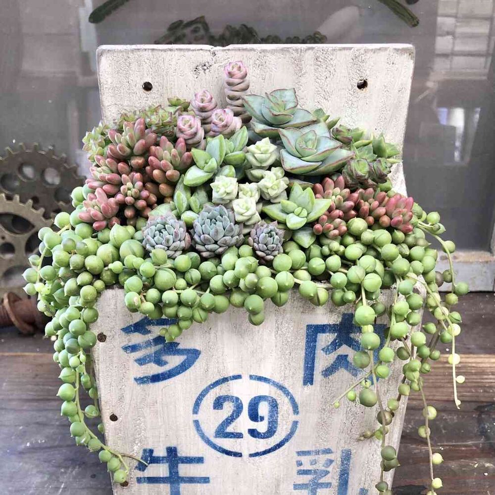 @taniku.ra さんが多肉牛乳に素敵な寄せ植えをしてくれました✨明日・明後日のフェルム・ド・プチで飾っておきます✨