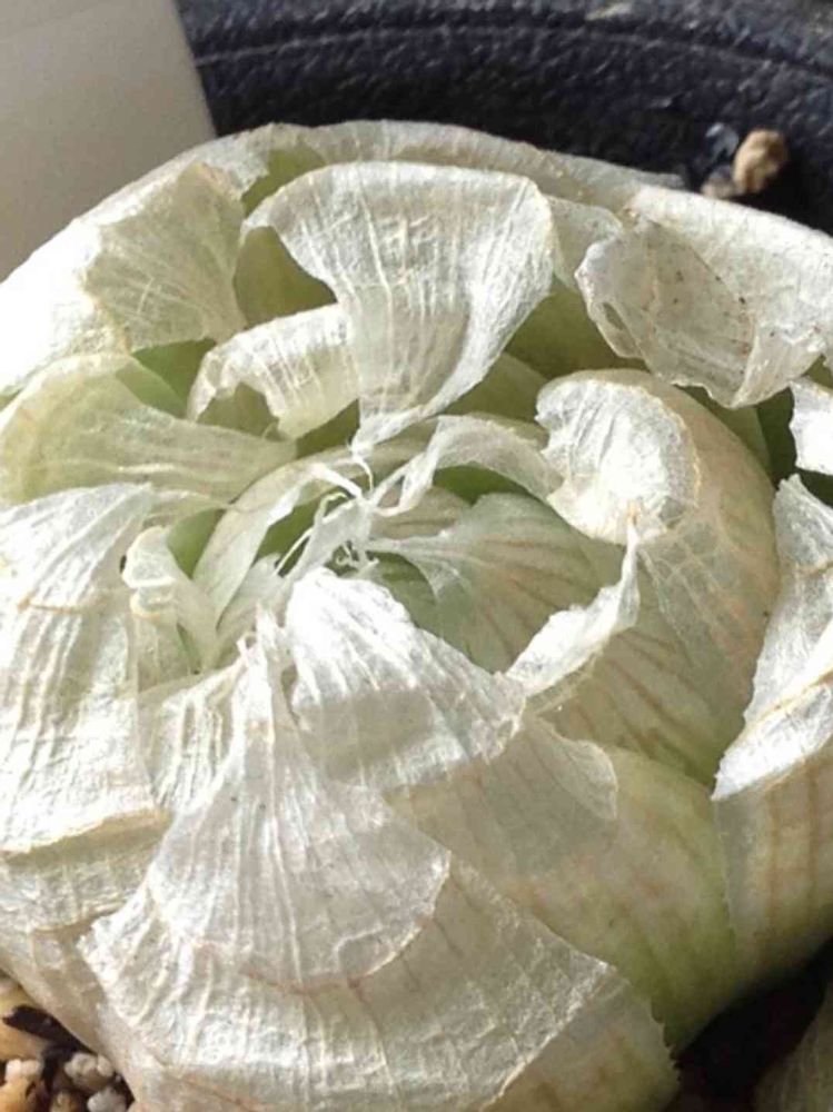この感じがたまらなく好き 触った時のプニプニ感もいいけど、カサカサとしてて枯れ葉を触る感じもいい タマネギみたいって言われる事が多いロックウッディ タマネギみたいだから丈夫かと思いきや意外と繊細 高音多湿が苦手で冬も屋外に置いてたら寒さにやられたり、うちでは中々増えていかない植物の一つ