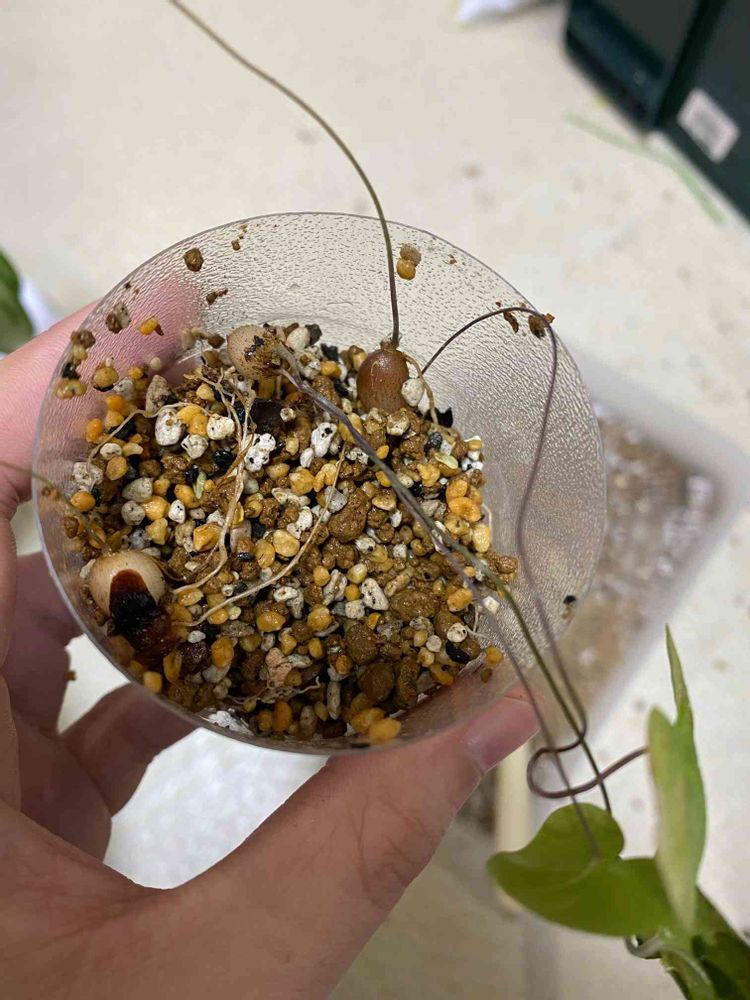 紙の植木鉢に植えてたから、雨で半壊してたので急きょ植え替え😅