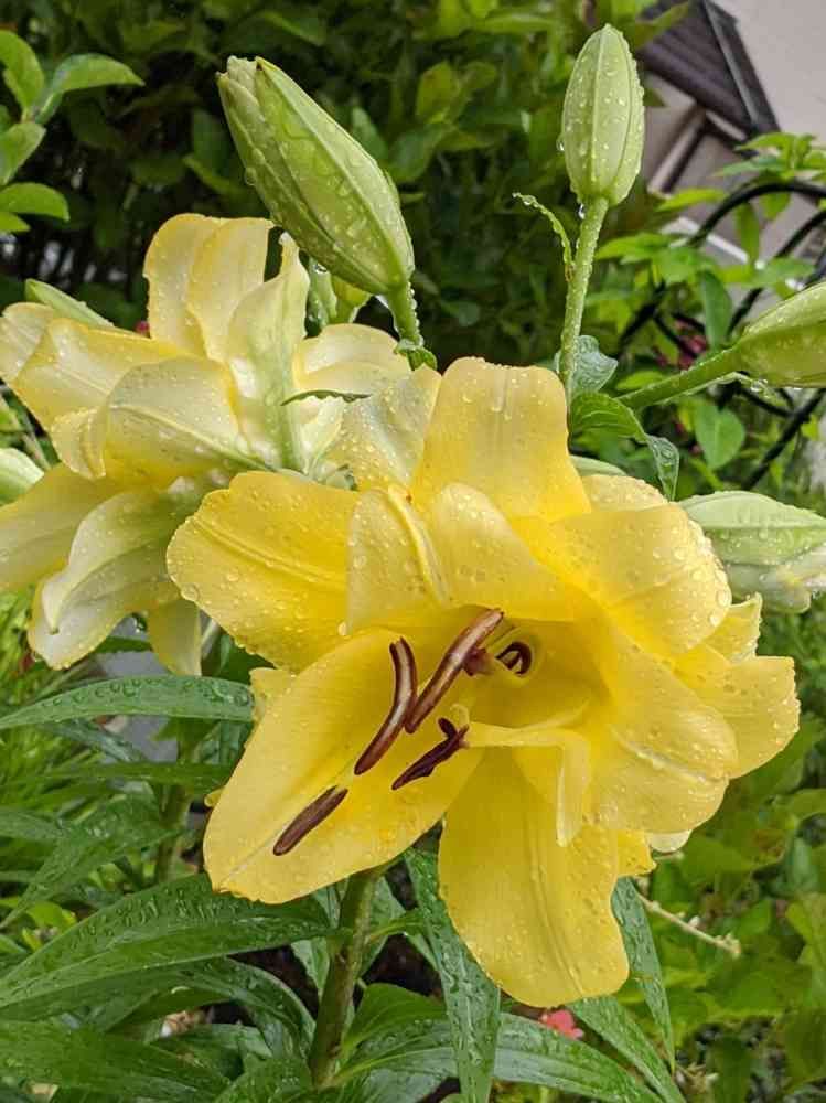 朝 外に出てみると雨に濡れたユリが咲いていました💛✨